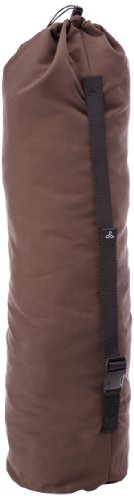Product Description Why carry in your hands what you can sling over your shoulder? This lightweight yoga mat holder has a mesh bottom panel, a front stash pocket and a drawcord closure. Keep your mat tamed and clean between sessions.