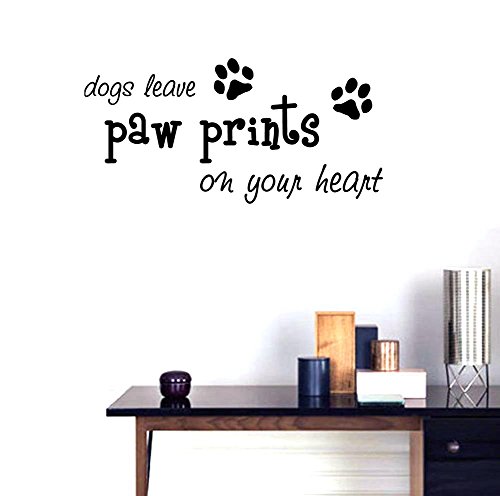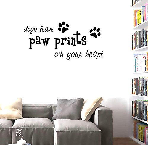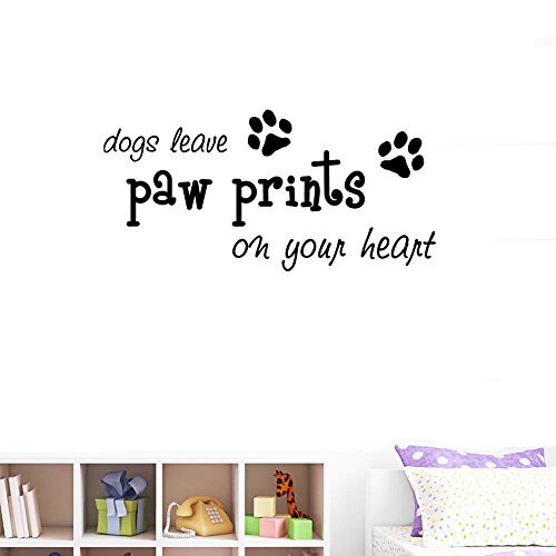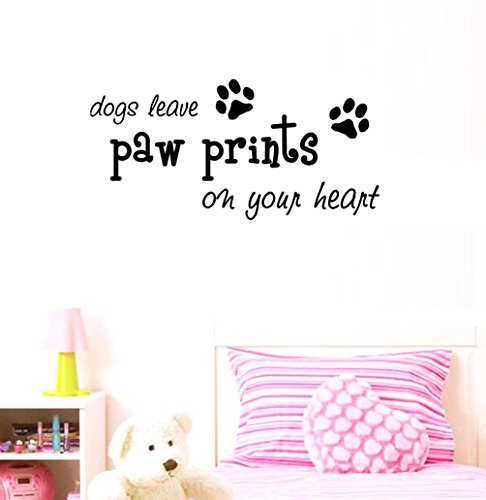 BIBITIME Puppy Footprints Wall Decal Quotes dogs leave paw prints on your heart Sayings Art Sticker for Nursery Study Baby Bedroom Kids Room Decor