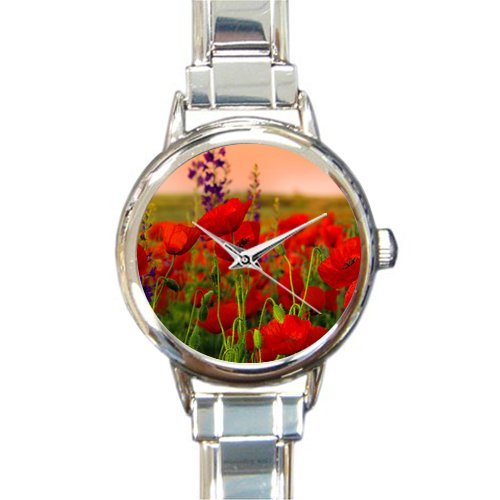 -. Title : Personalized Watch Amazing Poppy Flowers Round Italian Charm stainless steel Watch