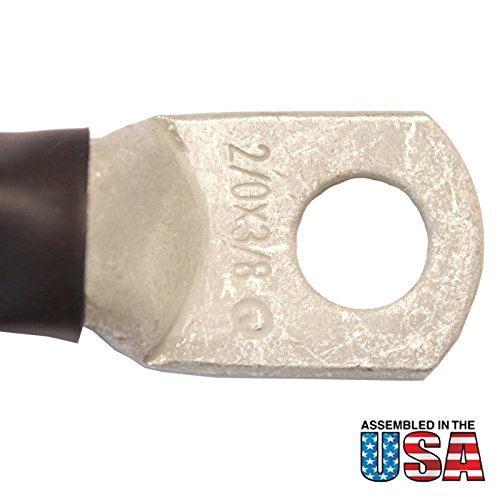 Studio : Exell Battery Publisher : Exell Battery Product Description AWG #2/0 Black Battery Interconnect Cable - 6 InchesWhy use larger cable? Very high current flows in the cables that connect an inverter to the batteries, even in a Low-Voltage power system. Household appliances can draw over 100 amps, and motors may draw up to 500 amps. Larger cables allow the inverter to draw the current needed to support a large load.Use these cables between individual battery cells or between battery banks. Use 2/0 cables for 175-amp and 200-amp fuses. Circuits protected by 250-amp breakers or 400-amp fuses should use 4/0 cables. Cables are marked in red heat-shrink tubing for positive and white on black heat-shrink for negative.Features of the 6" CablePlated Copper Lugs: These UL-listed lugs are made from tin-plated copper tubing with 3/8" holes, soldered or crimped to a stranded cable.Heat-Shrink Tubing: This tubing insulates the copper lugs and compression terminals. Tubing shrinks and glue inside melts when heated, sealing wires against corrosion and moisture.UL-Listed Battery Cable: This fine-stranded, very flexible cable is UL-listed for use as battery cable. It is rated MTW/THW/AWM, 600 Volt, sunlight resistant, direct burial, 105 degrees C. Available in red or black.SpecificationsBrand: BIAF ? Color: Black ? Length: 6" 0