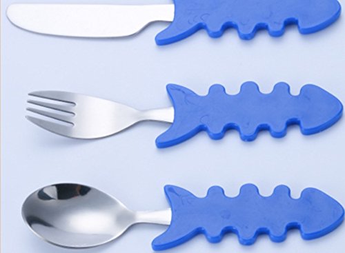 AijidaStainless steel cutlery fork spoon fish type children tableware set(1 set)
