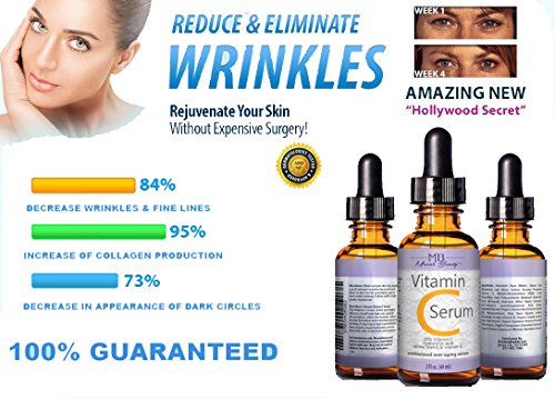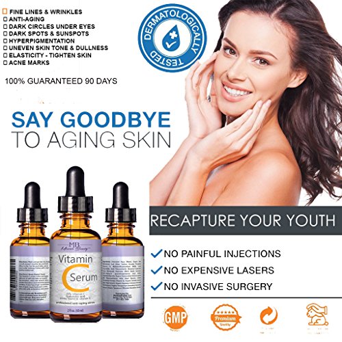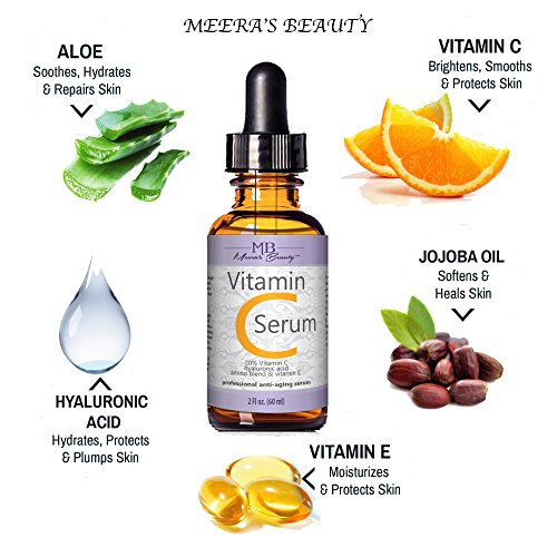-. Feature : ► VITAMIN C (20%) ► Anti-Aging & Brighter Skin ►Minimize Fine Lines & Wrinkles By Increasing Collagen Synthesis ► Eliminate Sunspots ► Reduce Signs Of Aging ► Skin Will Look Plump & Hydrated ► Youthful Glow ► Remove Dark Spots From Acne ► Hyperpigmentation ► Age Spots ► Absorbs Instantly & doesn't leave skin greasy allowing you to apply makeup, moisturizer or sunscreen only after a few seconds. / ► HIGH PERCENTAGE OF HYALURONIC ACID ► Hydrates skin and makes it feel silky soft and smooth. Hyaluronic Acid holds up to 1,000 times its weight in water. It draws moisture out of the environment and forms a protective, hydrating barrier on the skin. / ► CONTAINS VITAMIN E ► To block free radicals from the body, which play a large part in the aging process. If we can fight off free radicals, then we can reduce wrinkles and keep the skin youthful-looking. / ► OTHER POWERFUL INGREDIENTS ► Witch hazel, aloe, amino acids, gotu kola extract, horsetail plant extract, dandelion extract & geranium extract. / ► 100% GUARANTEED 90 DAYS ► We are so confident that you will love the benefits of Meeras Beauty Vitamin C Serum, that we'll refund every penny if you aren't 100% pleased. Simply contact us directly for a full refund. What do you have to lose?