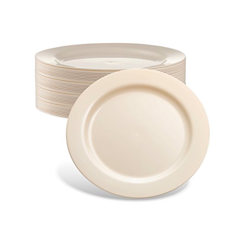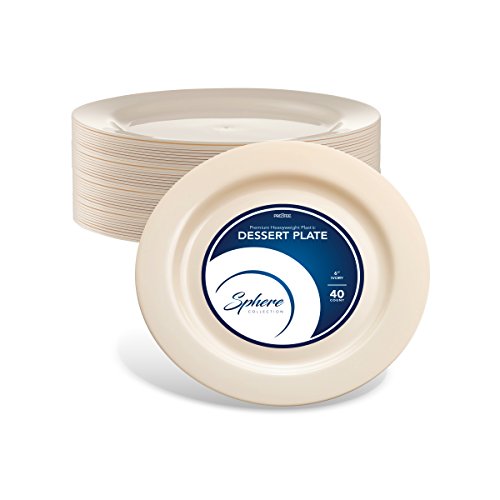 SPHERE PARTY PLATES / DESSERT PLATES | 6 Inch Plastic Plates for Appetizer Etc.| Round Ivory Everyday Plate, 40 Pack | Elegant & Sturdy Heavy Duty Disposable Plates for all Holidays & Occasions