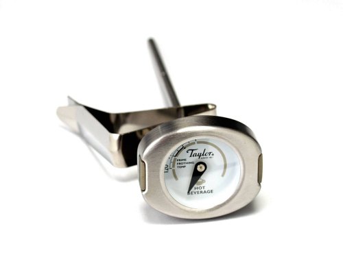 Studio : Taylor Thermometers Publisher : Taylor Thermometers Binding : Kitchen Product Description Our Premium Line of Thermometers represent the epitome of the Taylor Reputation.With a distinctive new look,this series clings to all things culinary. This line features full stainless steel cases designed with unique shaped oversized dials for ease of reading. The unique shape also prevents the thermometer from rolling off counter tops.The silicone accents aid in gripping and add a touch of color.This line is calibrated with pinpoint accuracy to provide quality results.Heritage,precision,quality,innovation,and style make the Connoissuer Line standout from any other-Taylor's Top -of -the- Line. 0