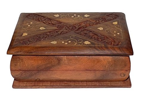 Christmas or Thanks Giving Day Gift, Handmade Wooden Jewelry Box Brass Work Book Shape Vintage Box, Wooden Jewelry Box for Women & Girls, Brown Jewelry Box Measures - 6 X 4 Inch