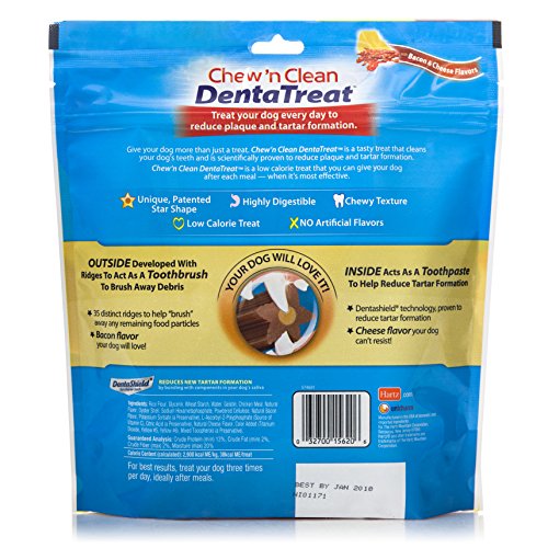 Give your dog more than just a treat. Chew'n Clean Dental Treat is a tasty treat that cleans your dogs teeth and is scientifically proven to reduce plaque and tartar formation. Chew'n Clean Dental Treat is a low calorie treat that you can give your dog after each meal - when it's most effective.