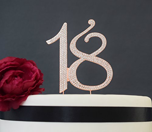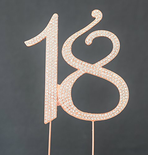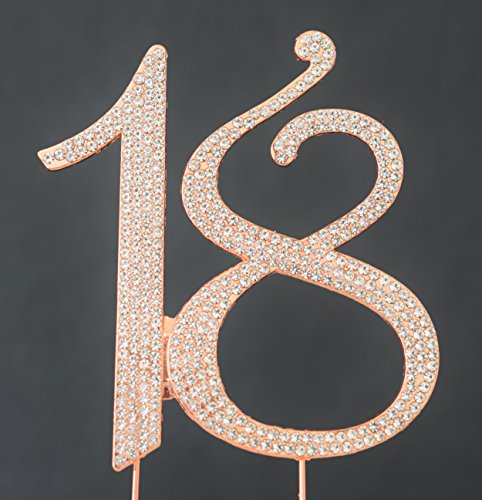 18 ROSE GOLD Cake Topper - Premium Sparkly Diamond Crystal Gem Rhinestones - Monogram Number Eighteen - 18th Birthday Party Decoration - Crystals Securely Attached - Perfect Keepsake (18 Rose Gold)