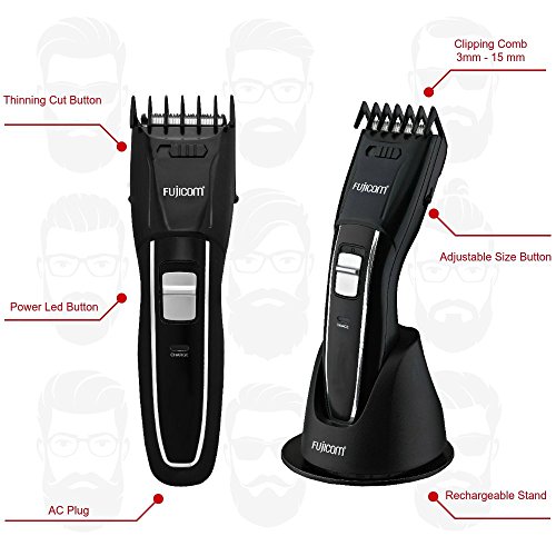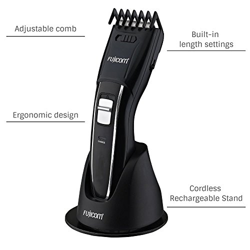 Fujicom Professional Beard Trimmer Grooming Styling Kit 6 Comb Gear Modes + Oil + Cordless Rechargeable Stand