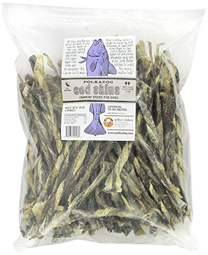 -. Binding : Misc. -. Brand : Polka Dog Bakery -. EAN : 0686603710456 -. Feature : Hand-rolled and dehydrated in the USA - Locally Caught / Packed full of Omega-3 Fatty Acids / Loved by Cats and Dogs Alike / Single Ingredient Dog Treat / Suitable for Dogs with Specific Protein Allergies -. Label : Polka Dog Bakery -. Manufacturer : Polka Dog Bakery -. PackageQuantity : 1 -. ProductGroup : Pet Products -. ProductTypeName : PET_SUPPLIES -. Publisher : Polka Dog Bakery -. Size : 2-Pound (Pack of 2) -. Studio : Polka Dog Bakery -. Title : Polka Dog Bakery Cod Skins Crunchy Sticks for Dogs, 2-Pound (Pack of 2) -. UPC : 686603710456