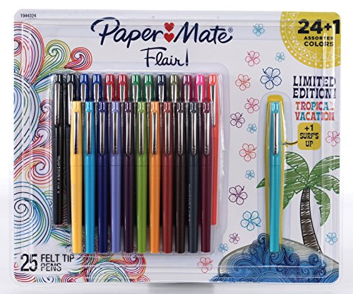 -. Feature : 25 Felt Tip Pens - Medium Point / Quick-drying, water-based ink resists smearing. Writing won't bleed through paper. / Point-Guard prevents tip from fraying for extended life. / Felt tip provides bold and expressive lines / Limited Edition Tropical Vacation