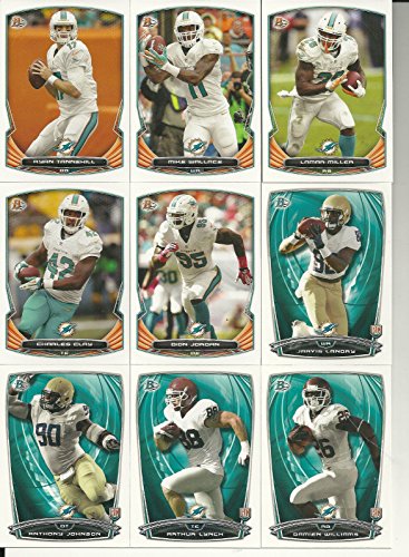 [Product Information]- Miami Dolphins 2014 Bowman NFL Football complete regular issue 9 card team set including Ryan Tannehill, Mike Wallace, Jarvis Landry, Lamar Miller, Arthur Lynch, Dion Jordan, Charles Clay, Damien Williams and Anthony Johnson.