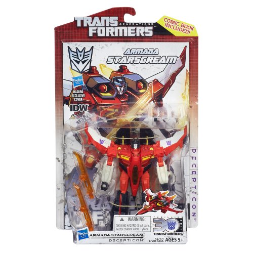-. Binding : Toy -. Brand : Transformers -. EAN : 0653569923817 -. Feature : Choose your side: Join the mighty Autobots or the destructive Decepticons / Most Transformers toys feature awesome weapons and cool converting features / Collect cool converting characters from the show Transformers P.R.Ime / Battle your friends with awesome Bot Shots figures / Relive the original adventures with Transformers Generations figures -. IsAdultProduct : 0 -. Label : Hasbro -. LegalDisclaimer : LEGAL DISCLAIMER:PRODUCT VARIATIONS AND ACCESSORIESMINT/MOC/MIB:LEGAL DISCLAIMER: FROM THE MANUFACTURER & S.B.T.SOME POSES MAY REQUIRE HAND SUPPORT. PRODUCT AND COLORS MAY VARY FROM PRODUCT MANUFACTURES PHOTO. S.B.T (ALL PRODUCTS SOLD MOC/MIB OR OTHERWISE NOTED BEFORE TIME OF SALE)AGES 5+ (IF YOU HAVE ANY CONCERNS ABOUT CHILD SAFETY PLEASE CONTACT US BEFORE MAKING YOUR PRODUCT PURCHASE.) -. Manufacturer : Hasbro -. Model : A5777000 -. MPN : A5777 -. PackageQuantity : 1 -. PartNumber : A5777 -. ProductGroup : Toy -. ProductTypeName : TOYS_AND_GAMES -. Publisher : Hasbro -. Studio : Hasbro -. Title : Transformers Generations Deluxe Starscream Action Figure -. UPC : 653569923817 -. Warranty : No Warranty