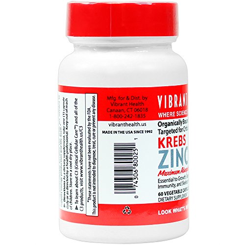 -. Binding : Health and Beauty -. Brand : Vibrant Health -. Label : Vibrant Health -. Manufacturer : Vibrant Health -. ProductGroup : Health and Beauty -. ProductTypeName : HEALTH_PERSONAL_CARE -. Publisher : Vibrant Health -. Studio : Vibrant Health -. Title : Vibrant Health Krebs Cycle Zinc, 30 Mg, Capsules, 60-Count