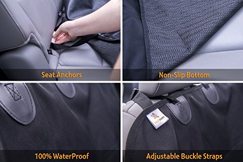 -. Feature : PROTECT YOUR CAR SEATS: Crafted with high quality heavy-duty, premium polyester, our dog seat cover provides protection against pet hair, scratches, accidents, and spills. Universal Vehicle Fit - 54" x 58": Designed to fit most cars, trucks, SUVs and mini. Perfect for large breeds and small or medium dogs. / EASY INSTALLATION: Very simple to install: Just buckle it in using the headrests and seat anchors for a safe, secure, adjustable fit. Black, Hammock Convertible Design, Quick, Easy Adjustments - The Smart Skippy design lets you quickly transition between cars with a few buckles. Easily convert between hammock or car seat bench coverage. / EASY CLEAN UP & WATERPROOF: Cleaner Pet TRAVEL Solution - Even great pets have accidents, get messy, or shed; which is why our dog car seat cover is tough, durable, and Machine Washable for easy clean up. / NON-SLIP DESIGN : Pet Comfort & Safety - Along with a soft comfortable top, our dog car seat covers boasts a non-slip bottom to keep it in place and better support puppies and dogs riding along. Velcro Openings for your seatbelts provides safety for your passengers and your pets. / LIFETIME WARRANTY: Smart Skippy's #1 P.R.Iority is our customers satisfaction.