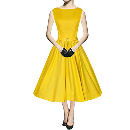 Product DescriptionSueJoe Women's Rockabilly Dress Plain 1950s Vintage Retro Party Swing Dresses0