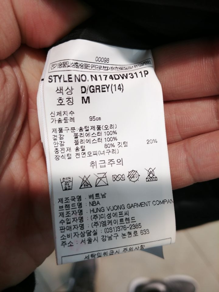 (첫 세탁은 드라이 크리닝을 권합니다)