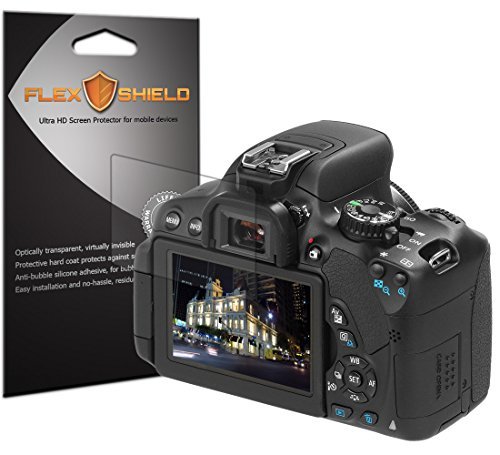 Flex Shield Ultra Clear HD Screen ProtectorFlex Shield Ultra Clear HD Canon EOS 650D Screen Protectors are engineered from a high quality multi-layered Japanese PET film that offers superior protection and enhances your overall viewing experience by offering high definition clarity. Flex Shield screen protectors feature an Oleophobic protective hard coat that is designed to resist everyday scratches and fingerprints. A unique Anti-Bubble silicone adhesive layer ensures your screen protector will properly adhere to your device without any air bubbles. Each Flex Shield screen protector is not only carefully designed, but also laser cut for a precise and exact fit. With “Exact-Touch” technology, Flex Shield Ultra Clear HD screen protectors allow your touch screen to remain fully responsive; which means you will never have to adjust your touch sensitivity settings.