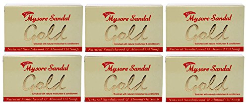 Mysore Sandal Gold Soap, 125 Grams Per Unit (Pack of 6) - Purest Sandalwood Soap - 100% Pure Essential Oils - Grade 1 Soap - TFM 80% - Suitable for ALL...