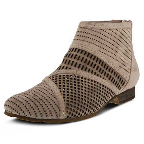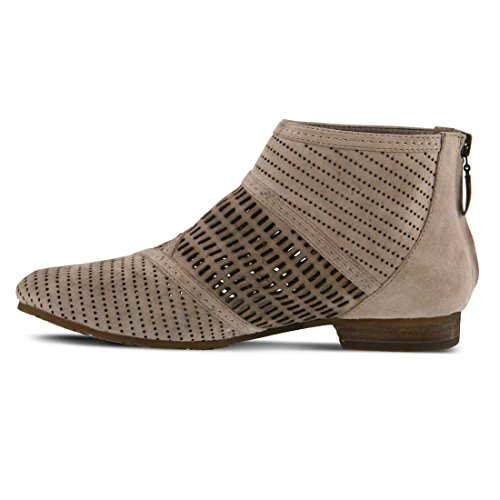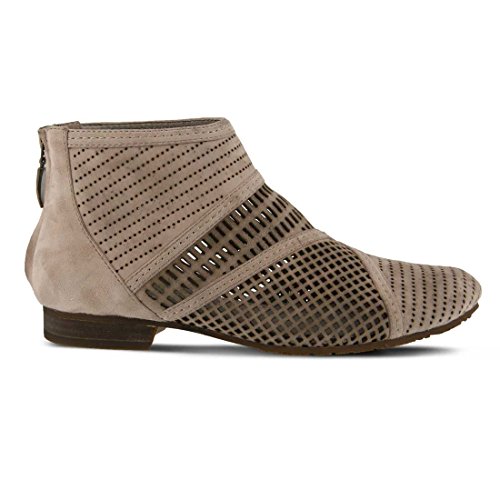 Binding : Apparel Product Description The Spring Step Sarani Perforated Bootie brings together uncompromising luxury and stylish innovation for an exquisite look. This boot is detailed with an asymmetrical perforated upper, round toe, and a back zipper for easy entry. Asymmetrical perforated upper Back zipper Synthetic leather lining. 0