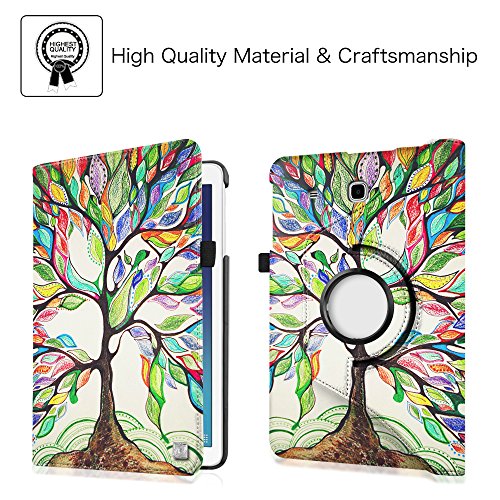 Fintie Samsung Galaxy Tab E 9.6 Case - Premium PU Leather 360 Degree Rotating Cover Swivel Stand for Samsung Tab E Wi-Fi / Tab E Nook / Tab E Verizon 9.6-Inch Tablet, Love Tree