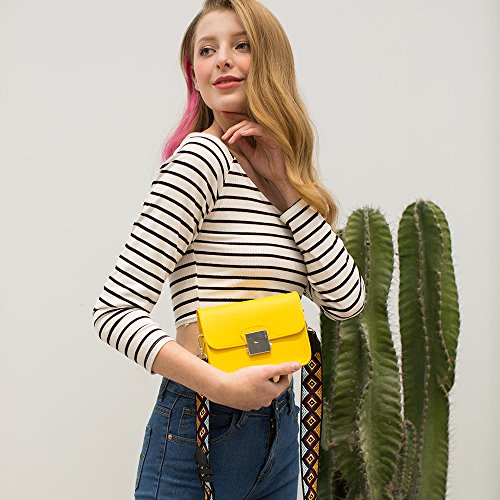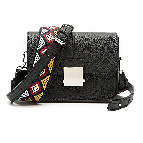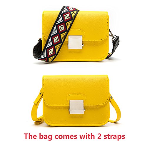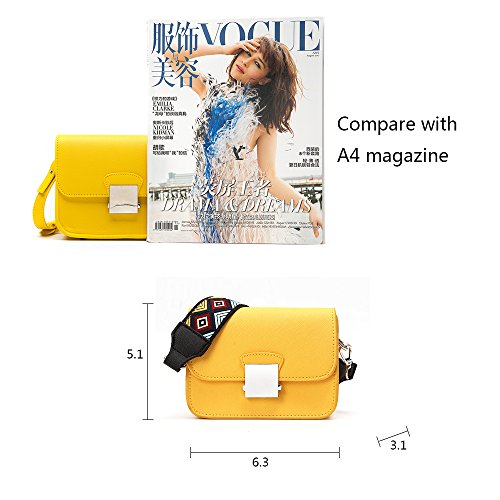 -. Feature : Pattern:Faux Leather / SHOULDER BAG SIZE -6.3"W x 5.1"H x 3.1"D / The Crossbody bag come with 2 straps,one is colorful wide strap, another one is solid strap / CLOSURE AND STORAGE:Flap magnetic closure;1 zippered slip inside for security essentials;enough room for your cell phone, makeup and toiletries / OCCASION OF LEATHER PURSE:Perfect for using in office, school, travel or any other daily occasions;especially an ideal traveling companion.