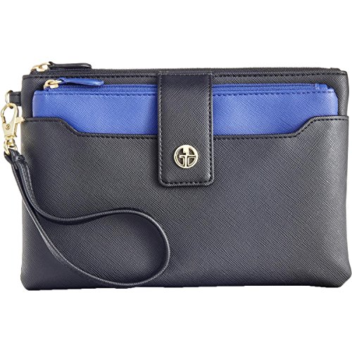 Giani Bernini Womens Saffiano Faux Leather Wristlet Handbag Black Small