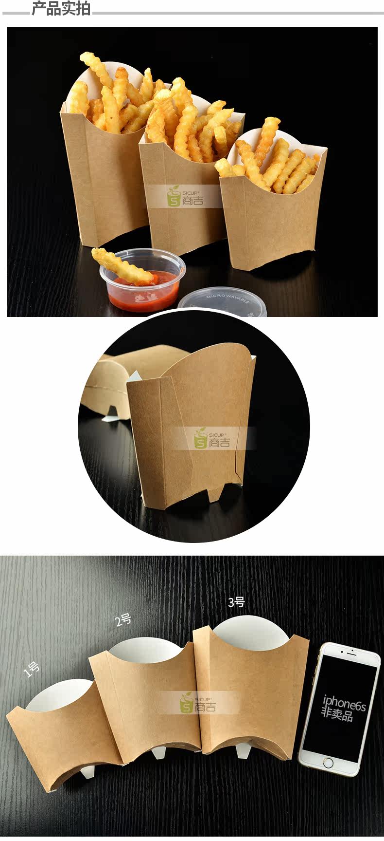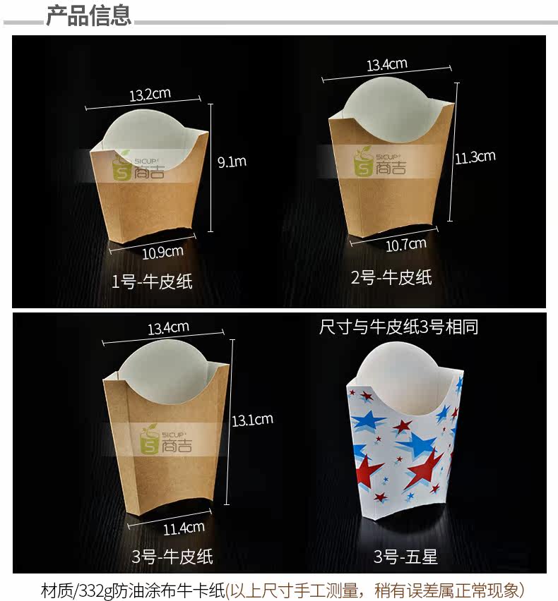 商吉纸杯 五星牛皮纸薯条盒一次性纸餐盒炸鸡烤翅鸡米花盒100只