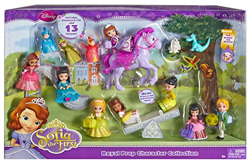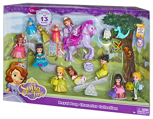 - Feature : Princess Sofia doll can "ride" her flying horse, Minimus, with pink flappable wings / Includes 14 dolls and figures, including Princess Sofia, 7 friends, the 3 fairy headmistresses and 3 animal friends! / Beloved animal friends Crackle the Dragon and Clover the Rabbit are also included / Articulation at the waist allows these adorable figures to both sit and stand / For more complete play, dolls unlock phrases in the Magical Talking Castle (sold separately)