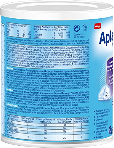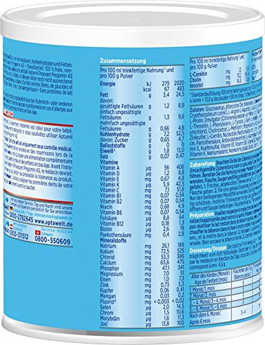 Die tägliche Trinkmenge Aptamil Pregomin AS ist je nach Alter, Gewicht und Verträglichkeit vom Arzt festzulegen.
