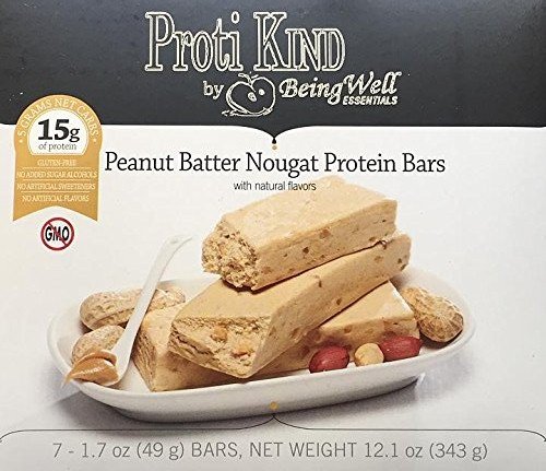 -. Binding : Health and Beauty -. Brand : Being Well Essentials -. Feature : High Protein - 15 grams Per Bar / Low Calorie - 170 Calories Per Bar / Low Fat - 7 grams Per Bar / Low Sugar - 5 grams Per Bar / Identical to popular brand sold in medical weight loss centers -. IsAdultProduct : 0 -. Label : Being Well Essentials -. Manufacturer : Being Well Essentials -. MPN : 7000 -. PackageQuantity : 7 -. PartNumber : 7000 -. ProductGroup : Health and Beauty -. ProductTypeName : HEALTH_PERSONAL_CARE -. Publisher : Being Well Essentials -. Studio : Being Well Essentials -. Title : Proti Kind Peanut Batter Nougat Protein Bars, 7 Bars, 15g Protein Per Serving