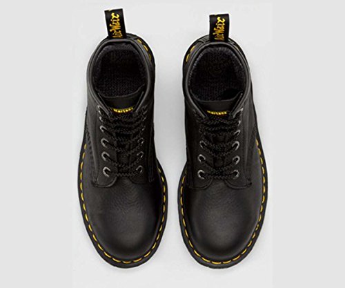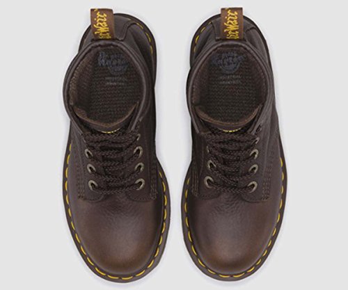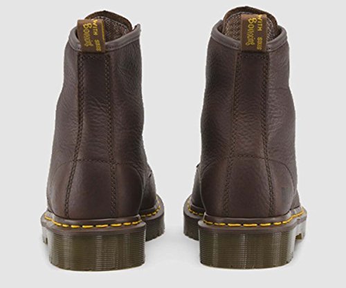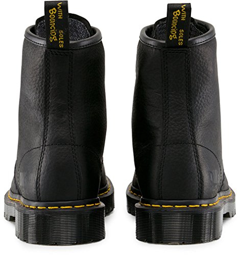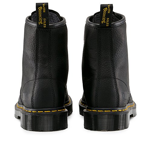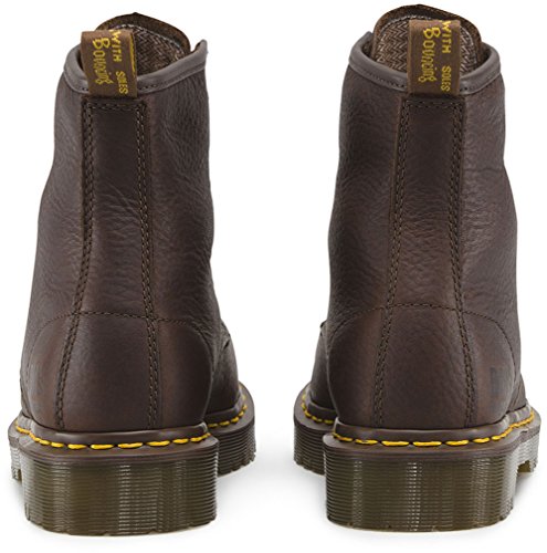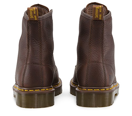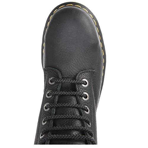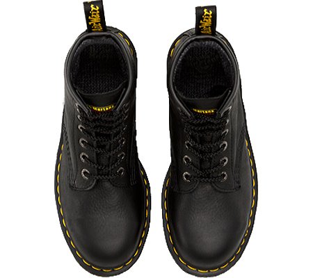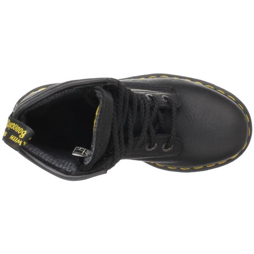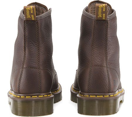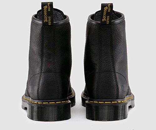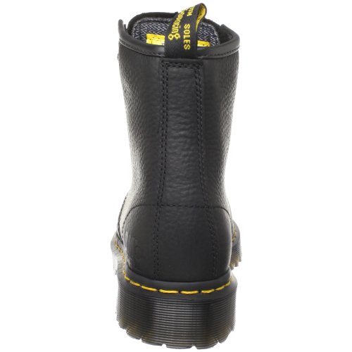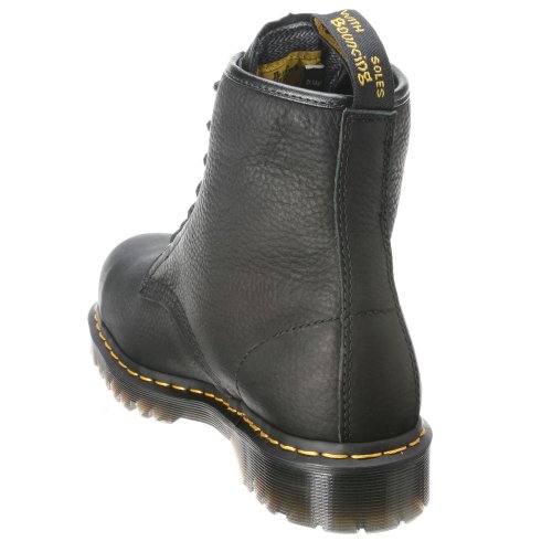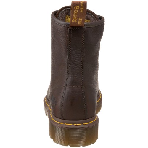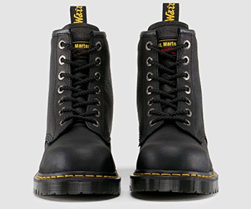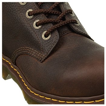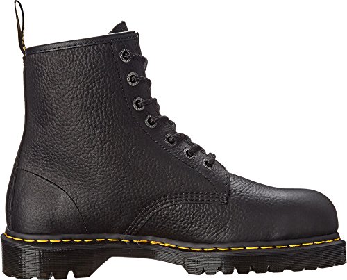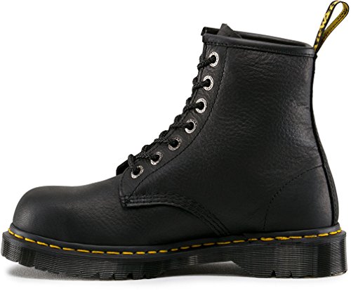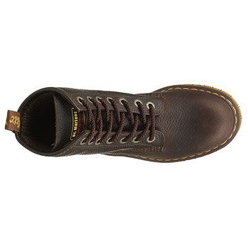 Amazon.com Product Description Get your work done with this 7B10 ST steel toe 7 boot from Dr. Martens. A tough leather upper, durable rubber outsole and iconic yellow stitching are all expected features. However, the heavy duty metal eyelets and lace carriers, industrial strength cord lacing and Cosmo moisture wicking lining are unexpected features. This boot is slip resistant to oil, fat, petrol and alkali with a standard wood shank.
