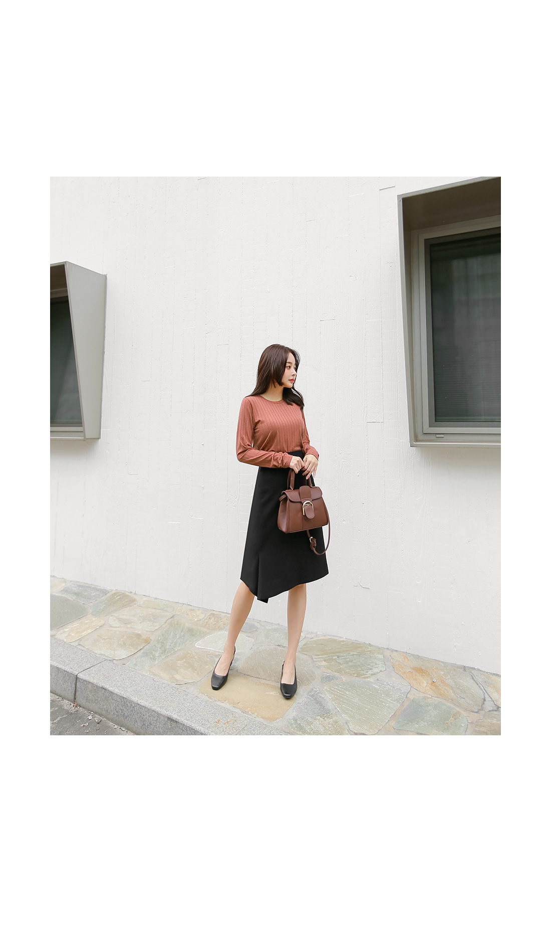 아이보리, 인디핑크, 블랙 3 가지로 나왔어요.모델은 인디핑크 색상을 착용하였답니다.