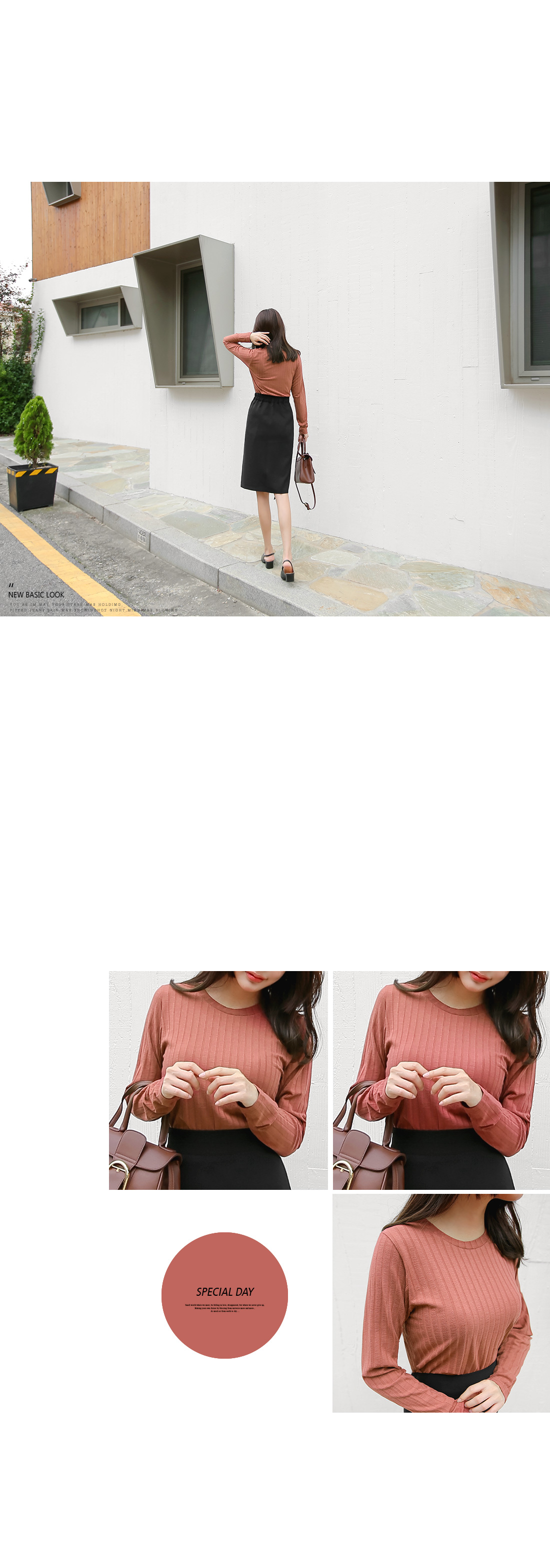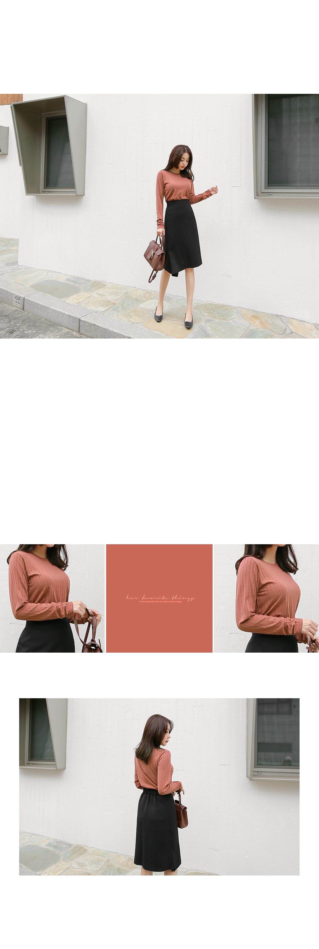 어느 얼굴형과도 잘 어울리는 라운드 네크라인으로,부담 없이 편안하게 입기 좋으실 거에요.