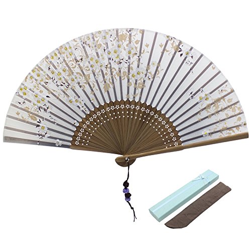Jsswb Ombre Grey Silk Folding Fans with Dreaming Flowers