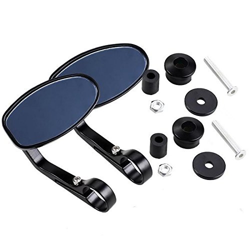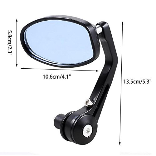 Specification: Material: Aluminum, Glass Mirror Color: Smoke Blue Bolt Color: Black Mirror Dimension: 10.6 x 5.8cm/4.1 x 2.3inch Bolt Length: 13.5cm/5.3inch Quantity: 1 Set (Left and Right) Fitment: fit with 7/8inch or 1inch standard handlebars