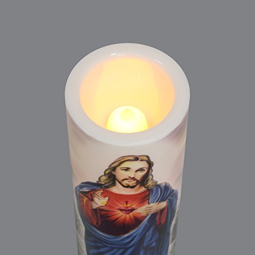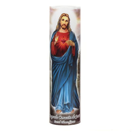 Sacred Heart of Jesus, Jesus Christ Sacred Heart, LED Flameless Devotion Prayer Candle 4 Hour Timer, Religious Gift