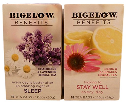-. Feature : Bigelow Benefits Sleep and Stay Well Herbal Tea Bundle - 2 Boxes of Tea: One each Stay Well and Sleep Tea / One Box of each (20 Individually Wrapped Bags in a Box) / Sleep includes Chamomile, Lavender, Poppy Flowers / Stay Well includes Lemon, Echinacea, Rose Hips, Elderflowers