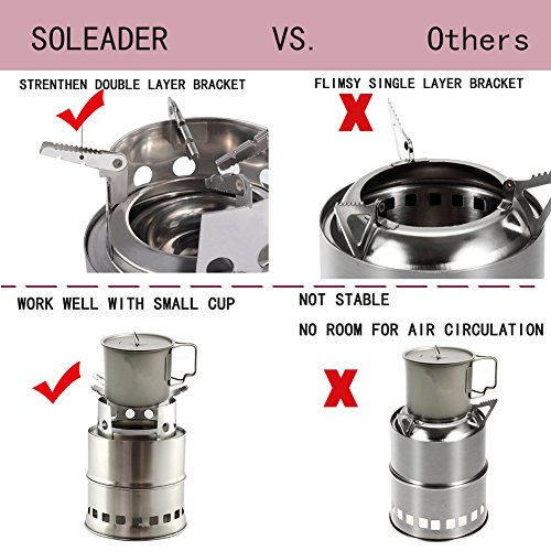 Safe To Use When you have larger campfires, a gust of wind come up suddenly may scatter burning embers everywhere. With SOLEADER wood gas stove you can use less wood and still have a safe fire for cooking.