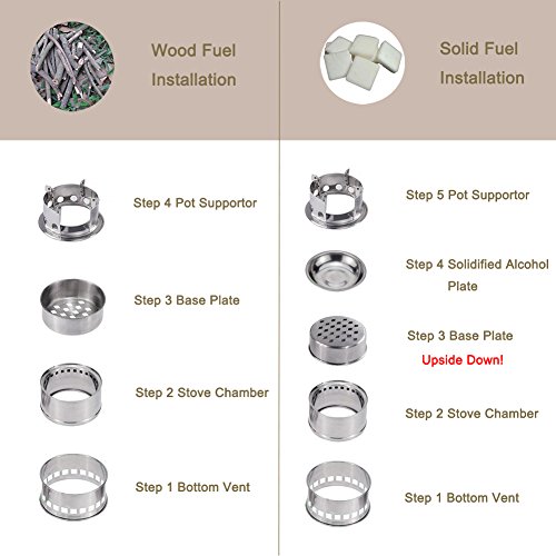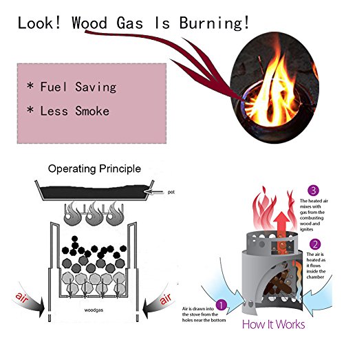 Simple To Set Up Assemble the stove in less than 10 seconds. Gather some tinder, dry leaves or paper, put them in the stove and add a handful of little twigs. Sticks about finger diameter work best. Set the fire on and enjoy. The rocket stove design takes care of the rest, creating the air circulation you need. As the fire grows, add a few more wood and the flames will grow bigger and bigger as the gasification creating a clean efficient burn. A handful of twigs may burn for about 20 minutes!