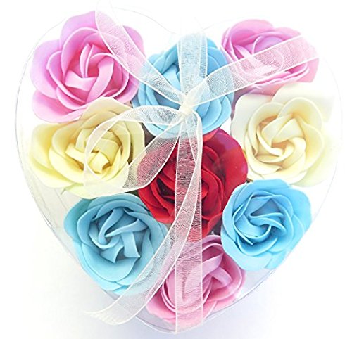 Easter basket Rose Scent Bath Bomb, Nine Colorful Rose Flower with Heart Gift Box. Pink+yello+blue +Red, go4