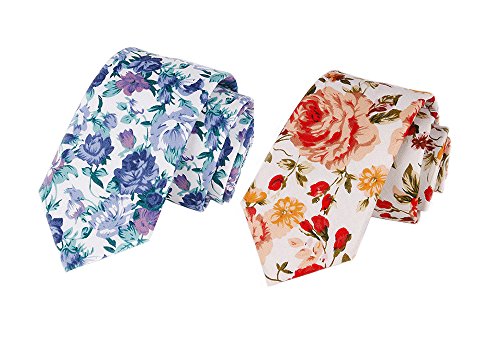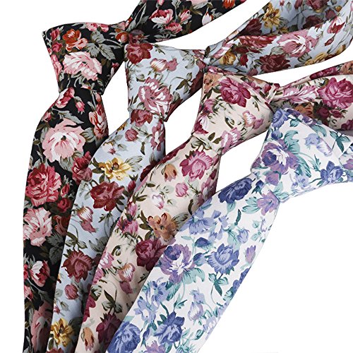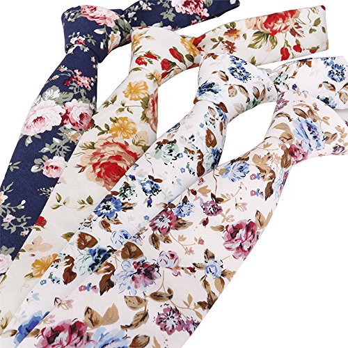 | May Lucky Narrow Tie Men's Cotton Neck Tie Floral Ties Casual Neckties |