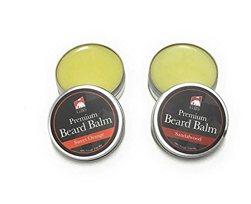 GBS Premium Beard Balm Gift Set- Sweet Orange & Sandalwood Beard Balms with Mustache comb & 4 sided Sandalwood Beard Comb (protective case included)