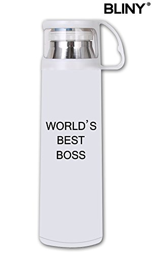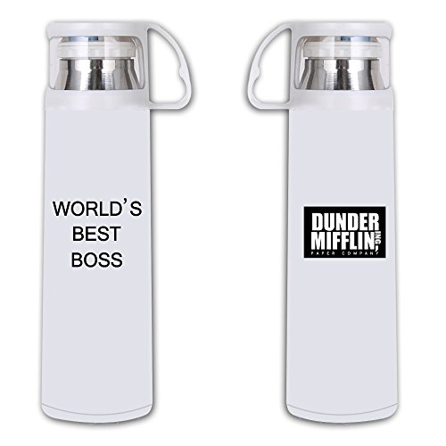 BLINY Funny Mug - Quote - Dunder Mifflin World's Best Boss - Stainless Steel Vacuum Travel Mug Thermos Cup White 14oz/350ML
