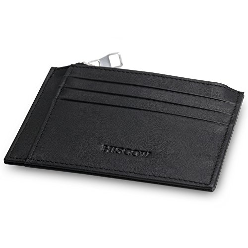 -. Binding : Apparel -. Brand : HISCOW -. Color : Black -. Department : mens -. EAN : 0711420235742 -. Feature : Italian full-grain calfskin (Soft and Smooth) / Interior details: 8 card slots, 1 keychain, 1 center big slot with metal zipper holds cash, coins and cards / Measures: 4.33 x 3.15 x 0.39 (inches) closed empty / Made in Italy / Black gift box with Tags -. PackageQuantity : 1 -. ProductGroup : Apparel -. ProductTypeName : ACCESSORY -. Size : One Size -. Title : HISCOW Card Wallet with 1 Keychain and 8 Credit Card Slots - Italian Calfskin -. UPC : 711420235742