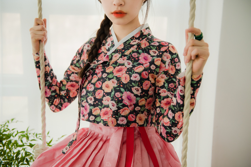 이번시즌 꽃닮의 저고리는 전통적인 한복 고유의 디자인 방식인 평면재단법으로 지어졌습니다.