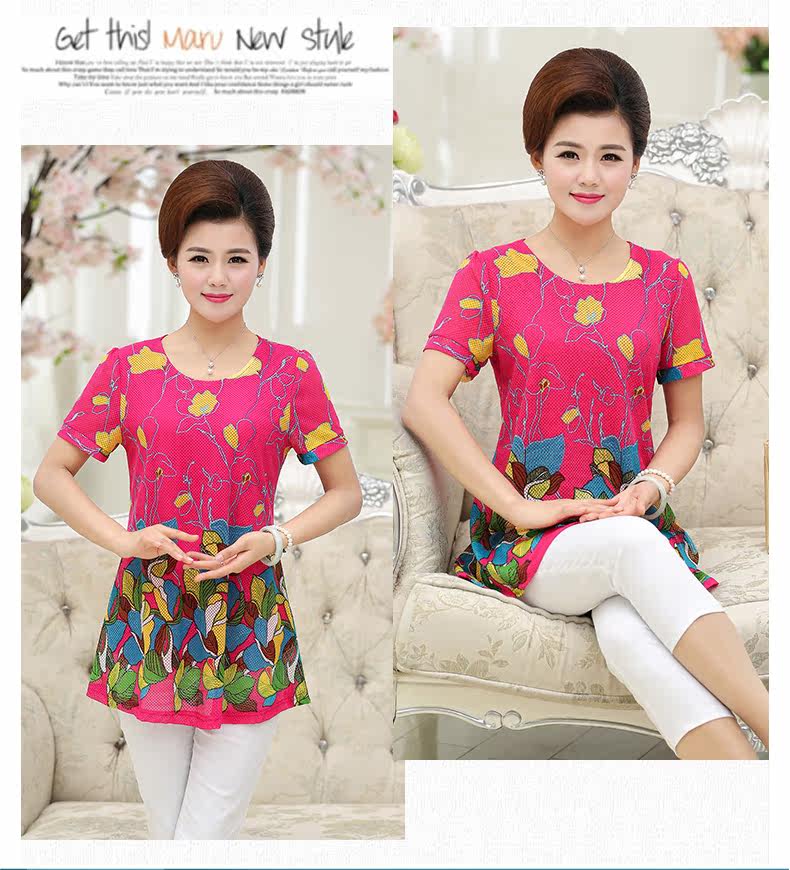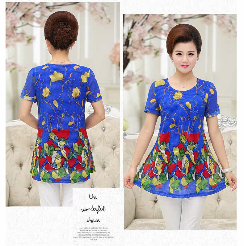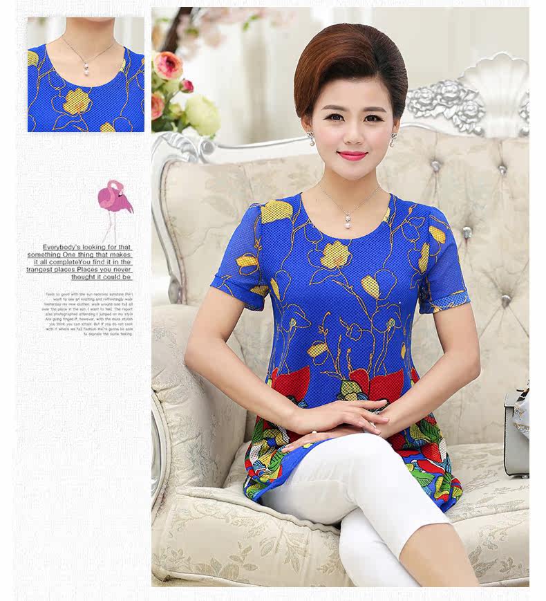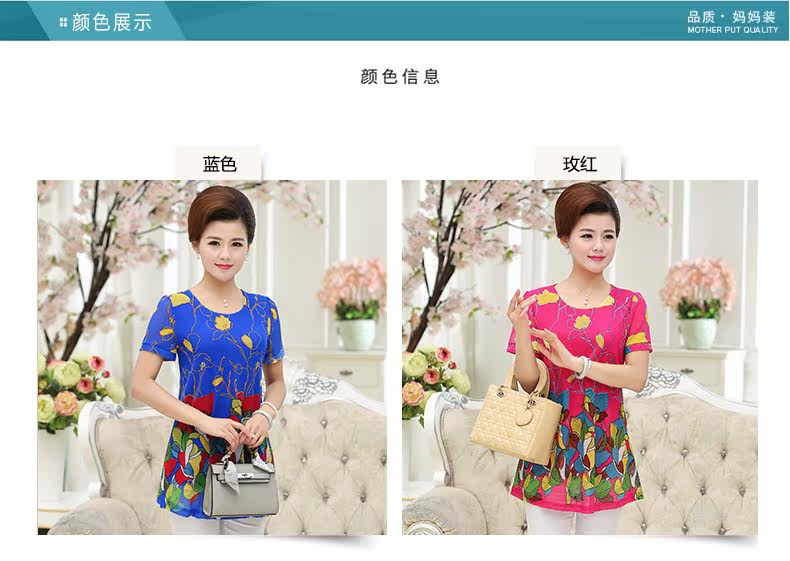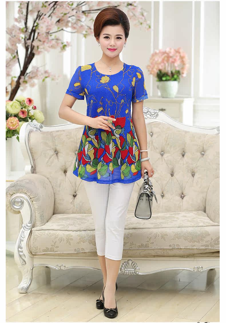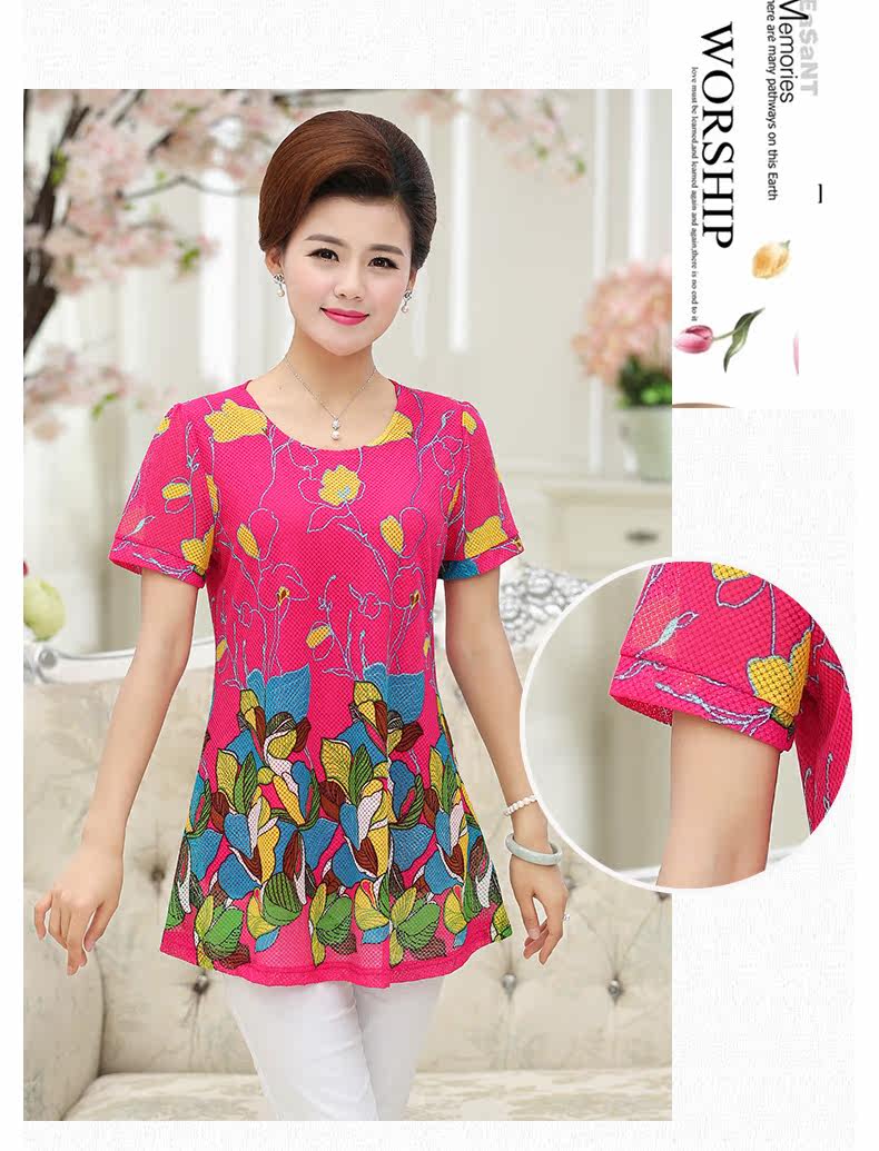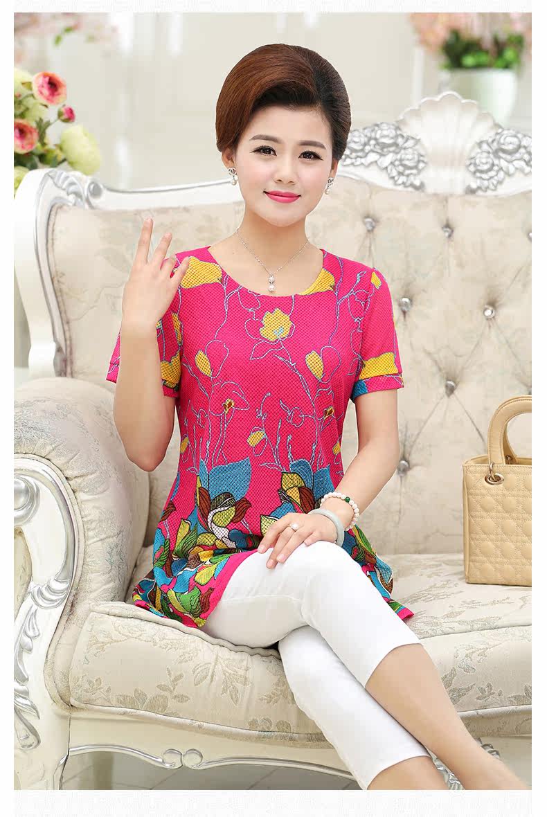 中老年女装夏装短袖T恤中年人女装夏季40-50岁大码妈妈装上衣上装