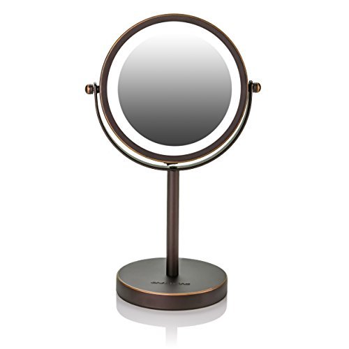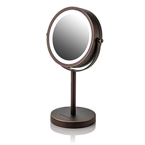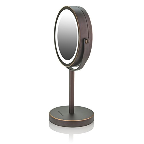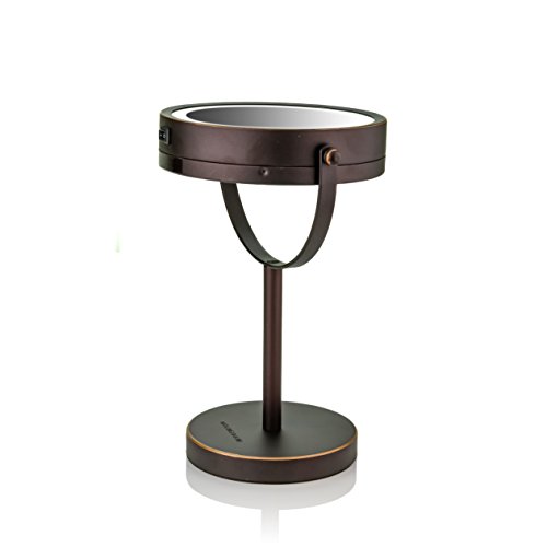 Ovente Lighted Tabletop Makeup Mirror, 6 Inch, Dual-Sided 1x/7x Magnification, Cordless, Battery Operated, Cool-Tone LED Lights, Antique Bronze...