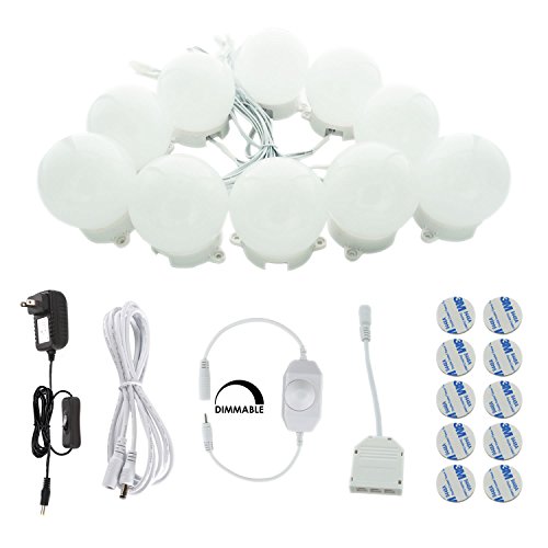 Hollywood Super Star Style Makeup Mirror Vanity LED Light Bulbs Kit for Dressing Table with Dimmer and Power Supply Plug in, Linkable and Flexible Strip, Mirror Not Included (10 Bulbs Warm white)