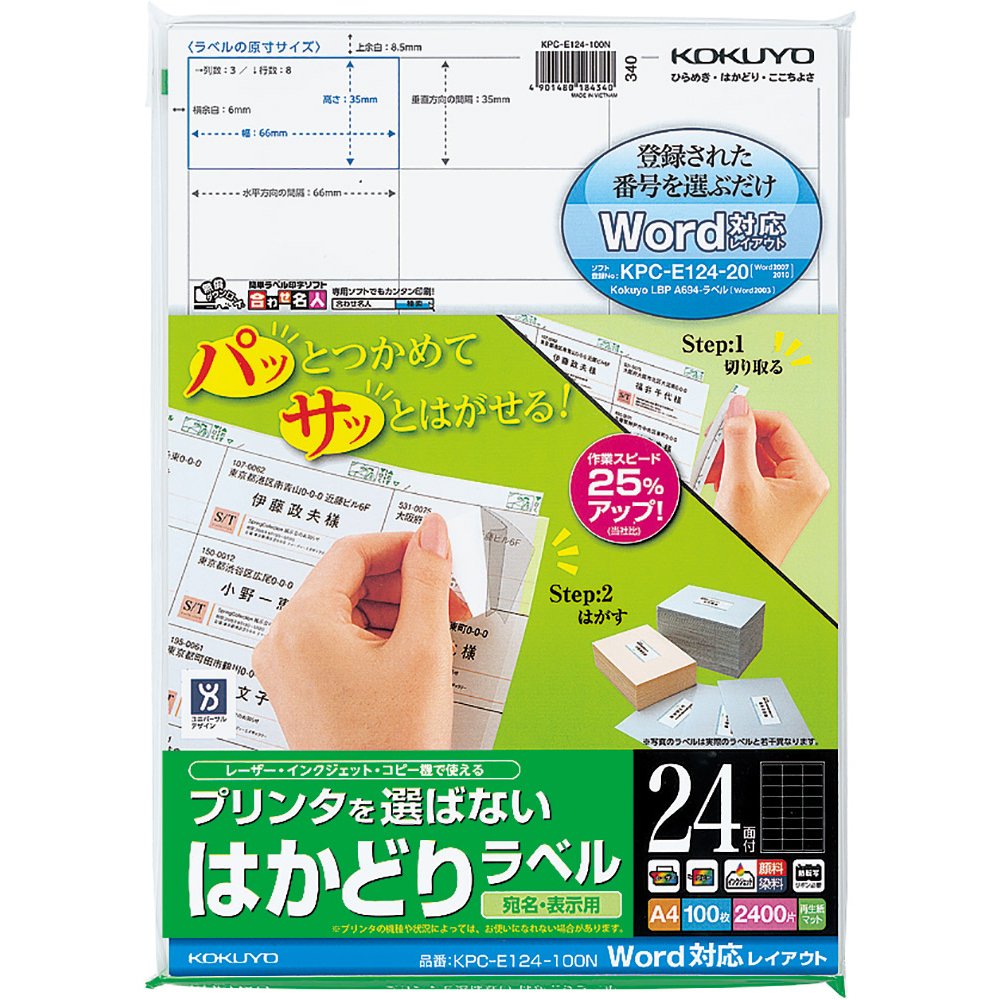 100 pieces of KPC-E124-100 A4 24 side label progresses Kokuyo color laser and inkjet printers (japan import)