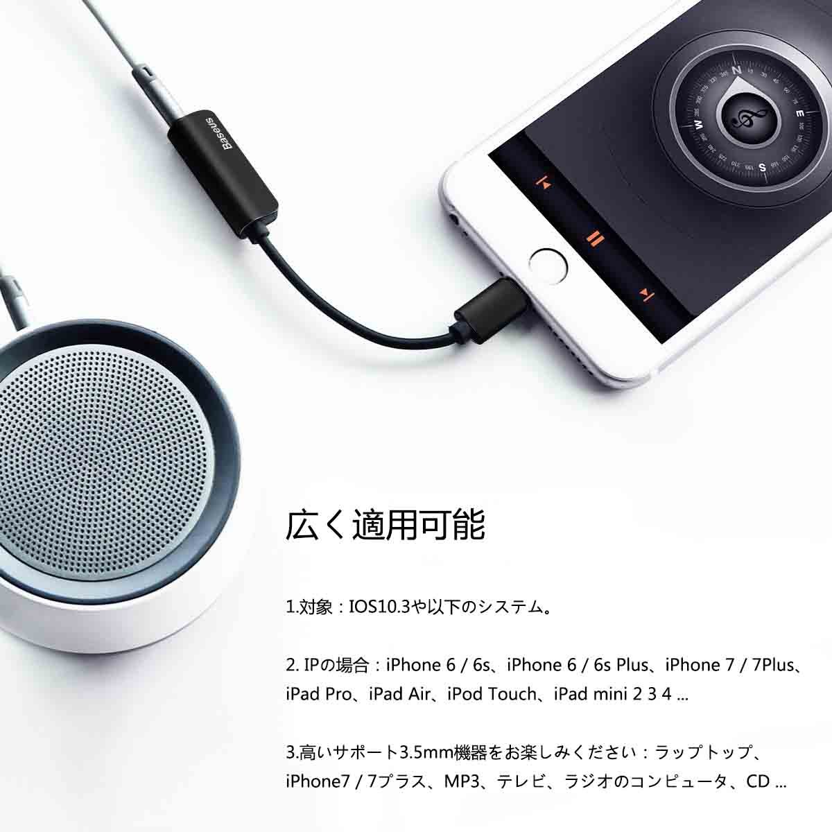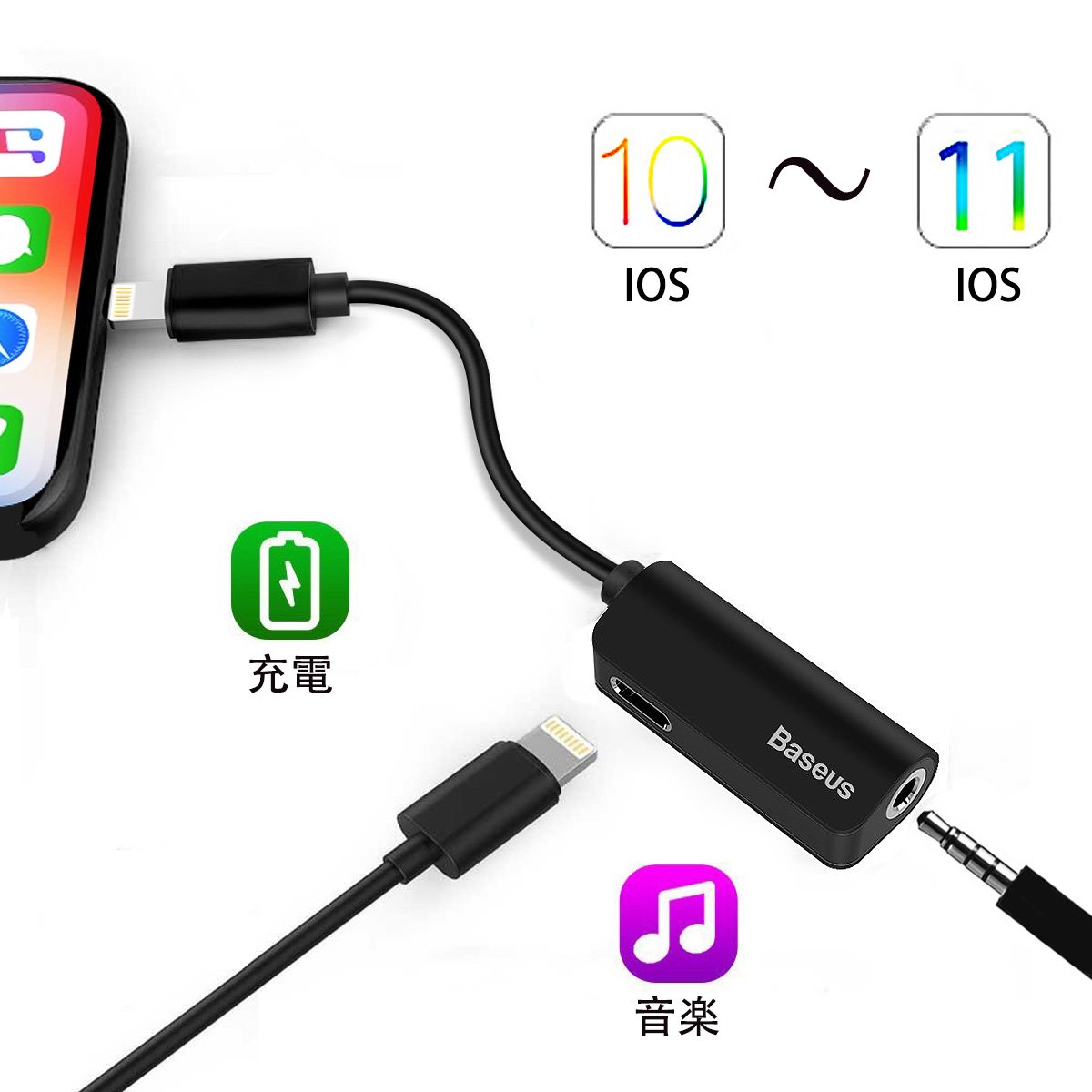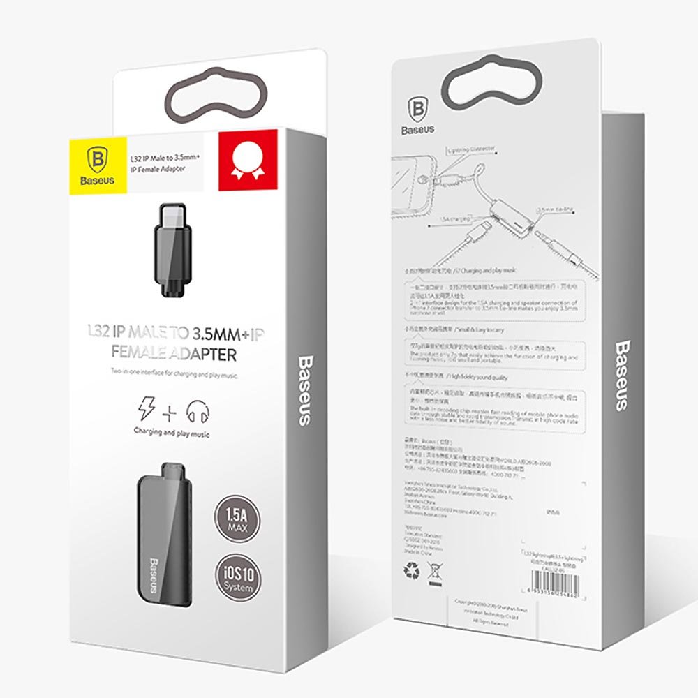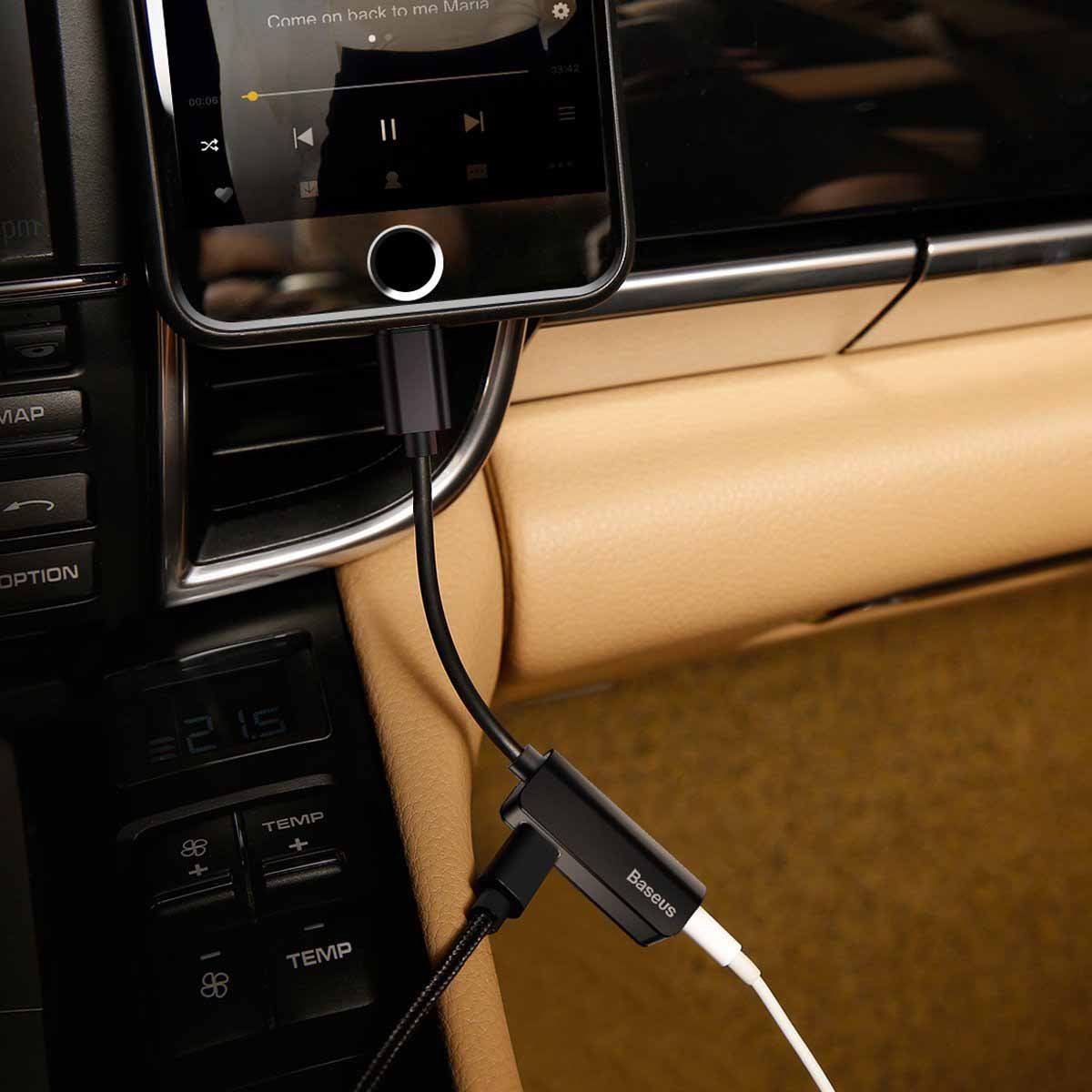 3.5 mm headphone jack on BASEUS 2 in 1 lightning cable, charging adapter for iPhone 7/7 plus